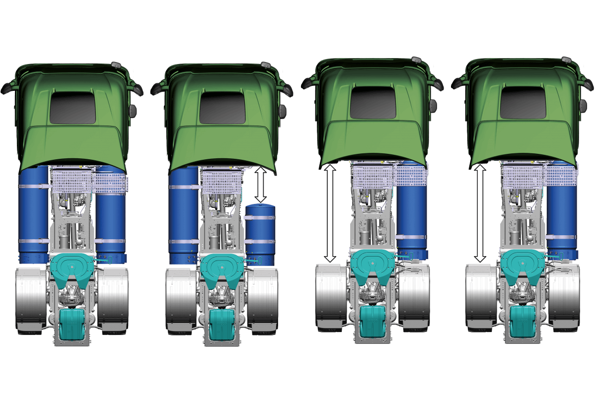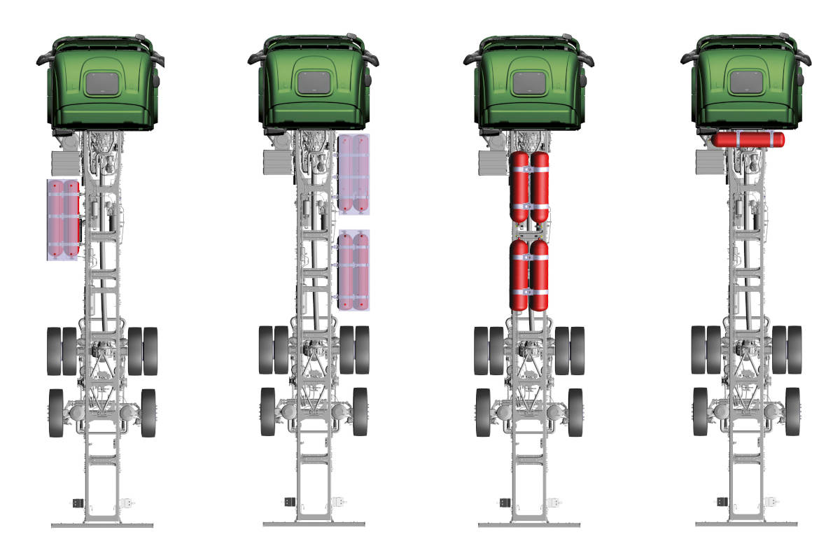 A hatótávolság szempontjából legjobb LNG-tartályok 4 méretben állnak rendelkezésre a szabványos vontatókhoz, így több alvázterület szabadítható fel a különféle küldetésekhez.