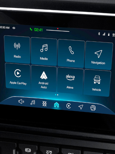 Az új, 10” vagy 12”-os TFT digitális műszeregység teljesen testreszabható, és fejlett ADAS-kezelőfelületet biztosít. Az infotainment kompatibilis az Apple Carplay és az AndroidAuto rendszerrel, így egyidejűleg 2 telefon csatlakoztatható Bluetooth-on keresztül.