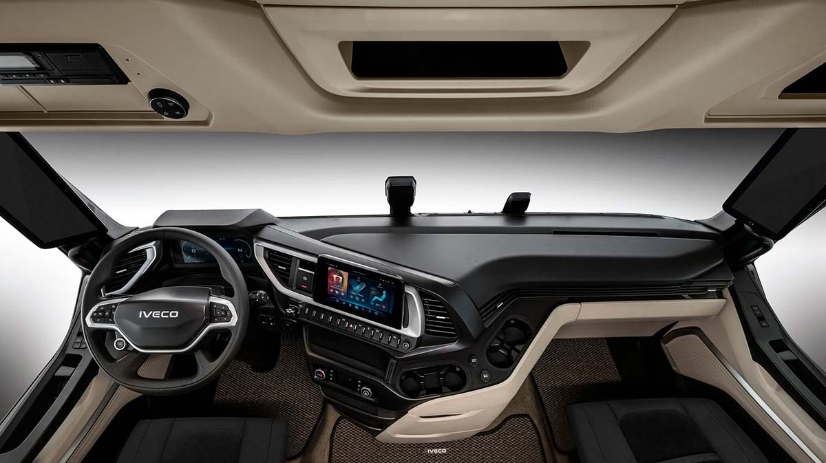 Az IVECO S-Way vezetőfülkéjét a járművezető kényelme és a könnyű használhatóság fémjelzi.